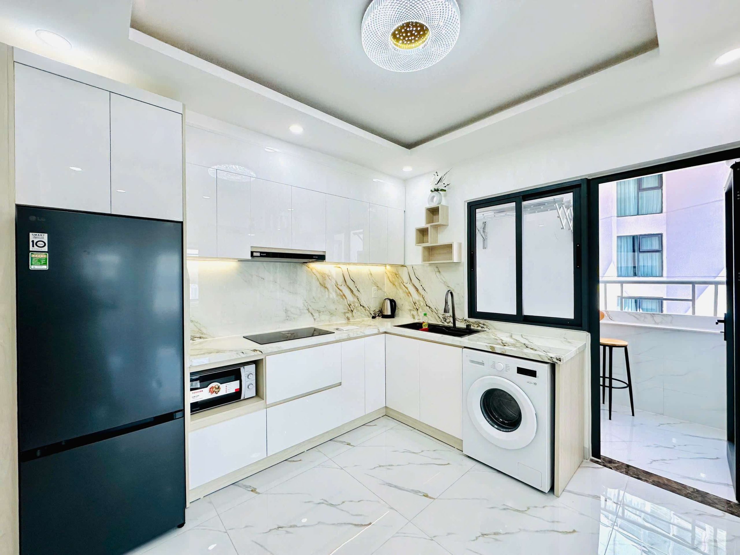 - Nhà bếp: Trang bị tủ bếp hiện đại, bếp từ, máy hút mùi – sẵn sàng cho mọi nhu cầu nấu nướng.