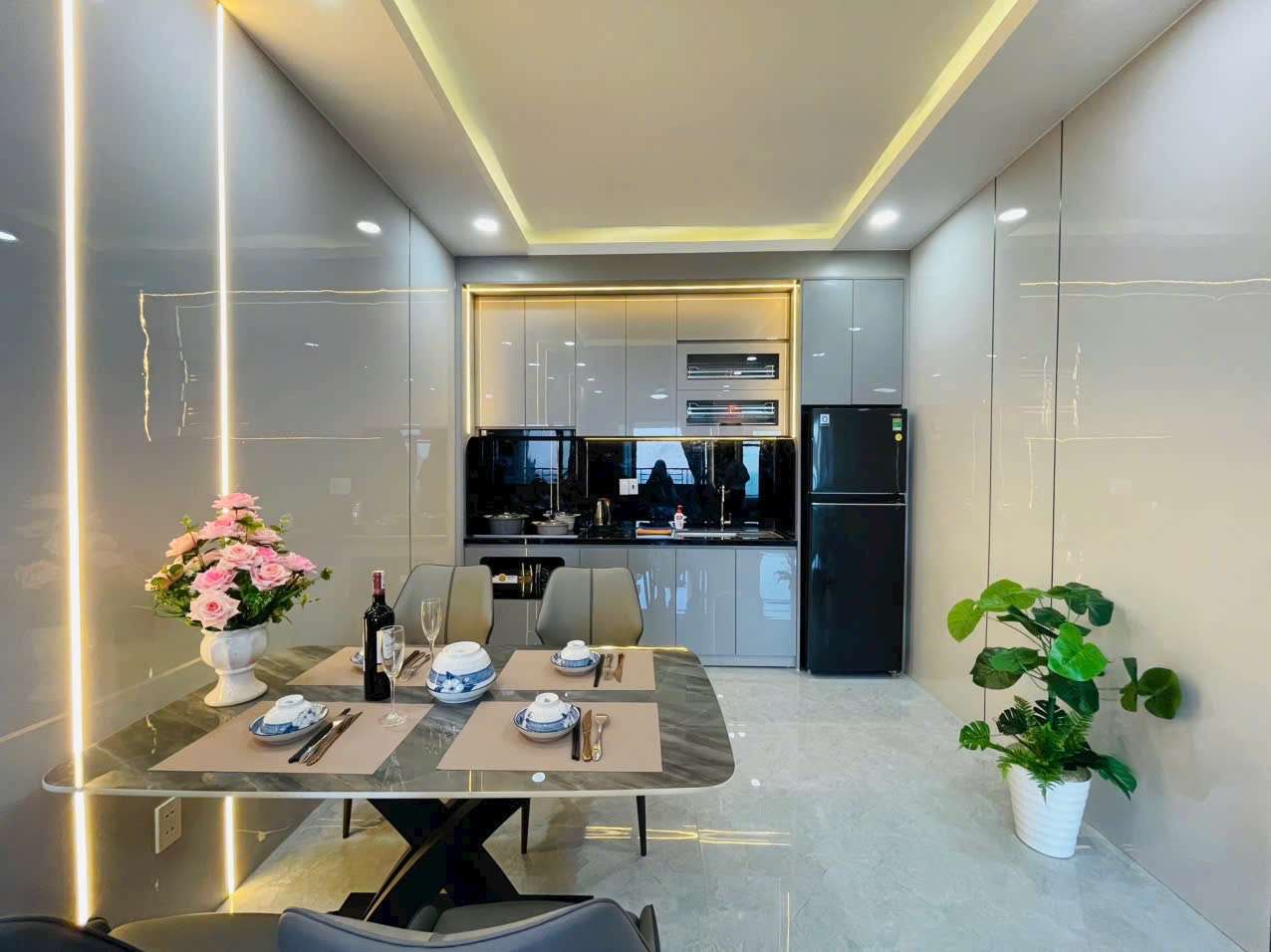 - Nhà bếp: Trang bị tủ bếp hiện đại, bếp từ, máy hút mùi – sẵn sàng cho mọi nhu cầu nấu nướng.