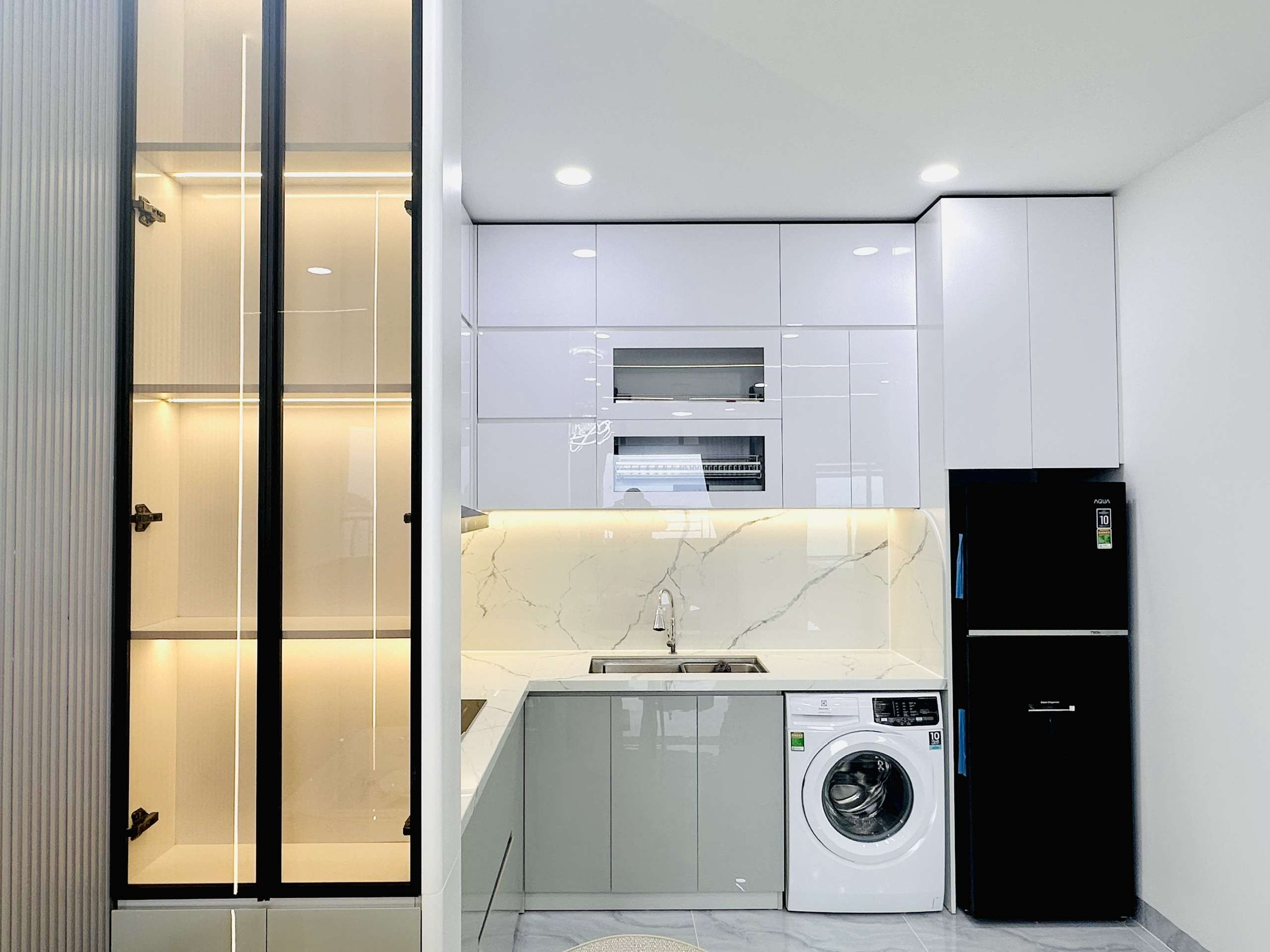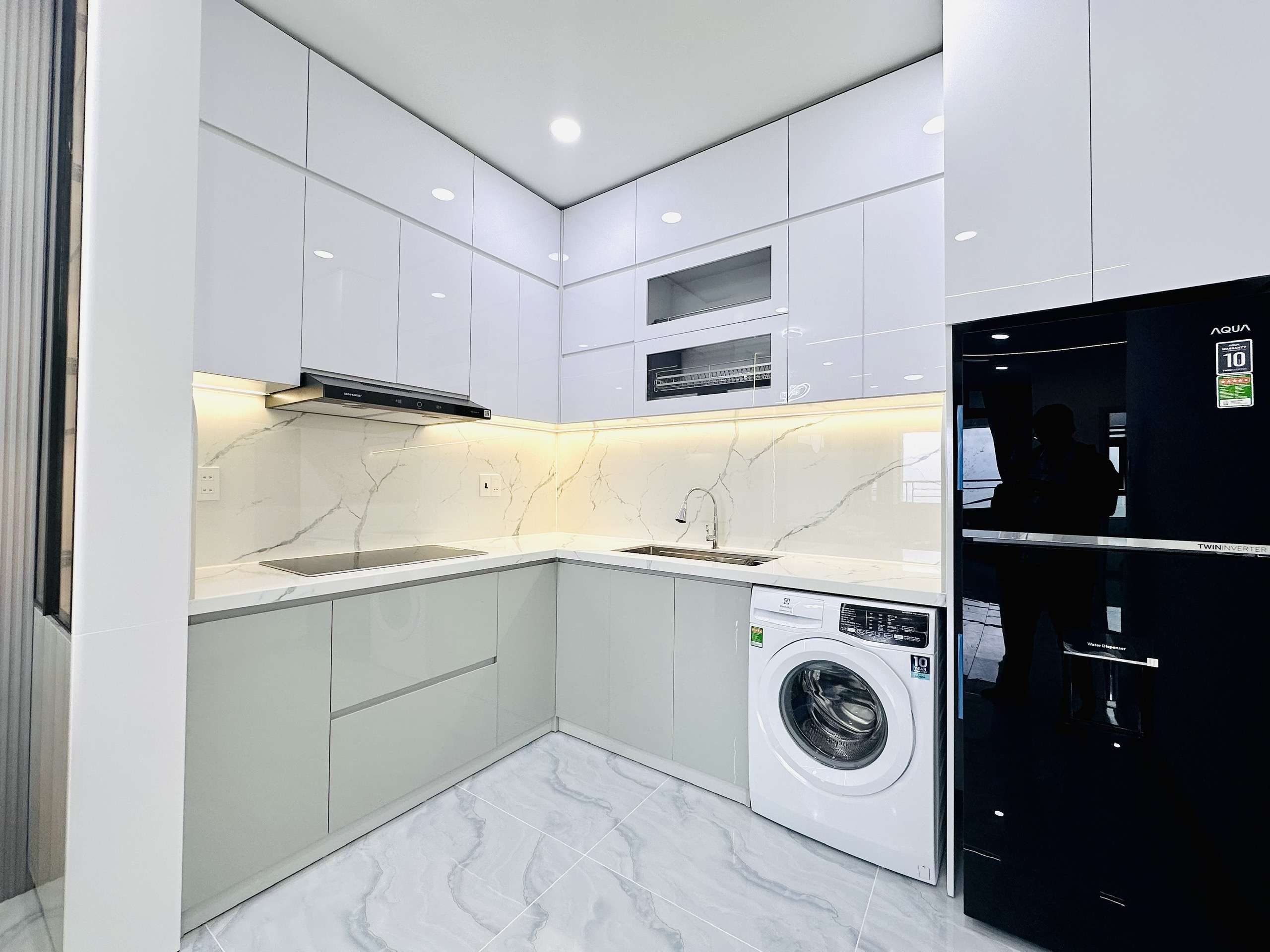 - Nhà bếp: Trang bị tủ bếp hiện đại, bếp từ, máy hút mùi – sẵn sàng cho mọi nhu cầu nấu nướng.
