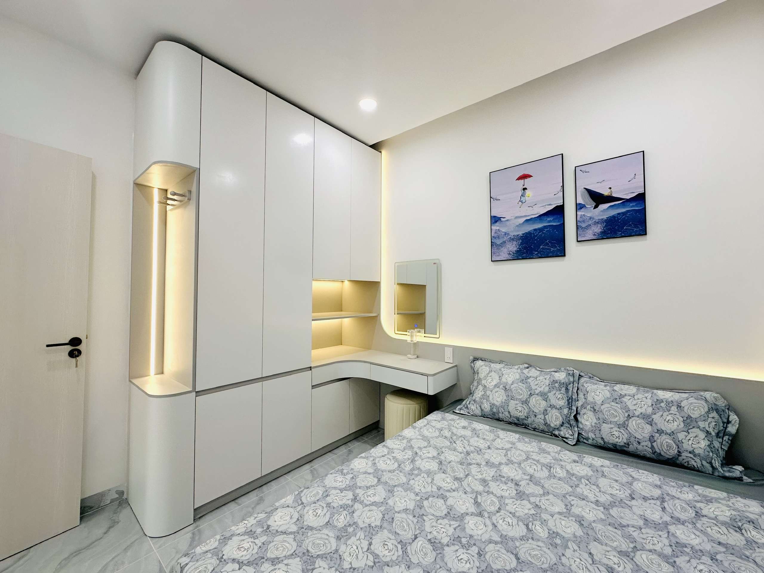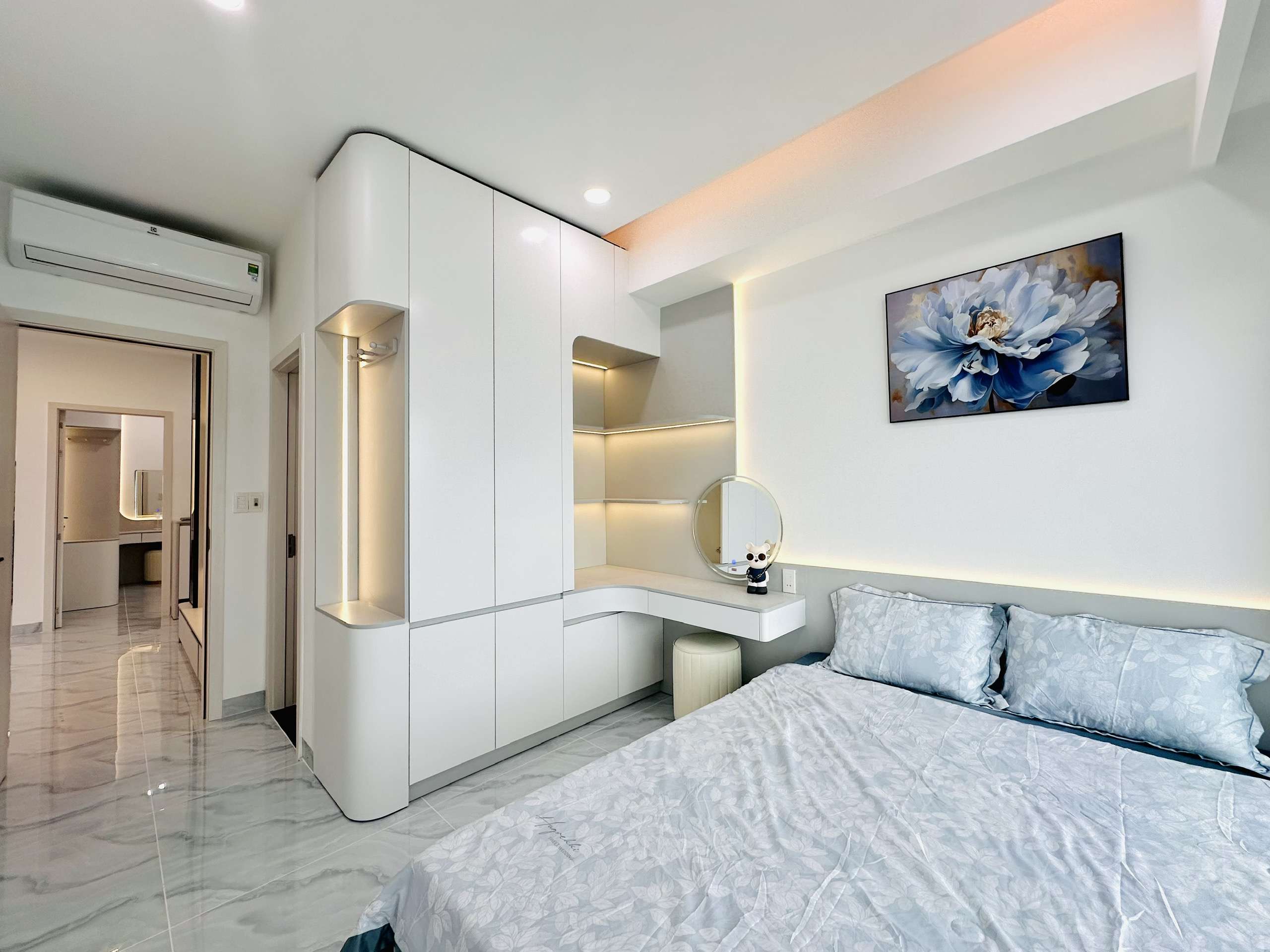 - Phòng ngủ: 2 phòng ngủ rộng rãi với giường king-size, tủ quần áo, và tivi