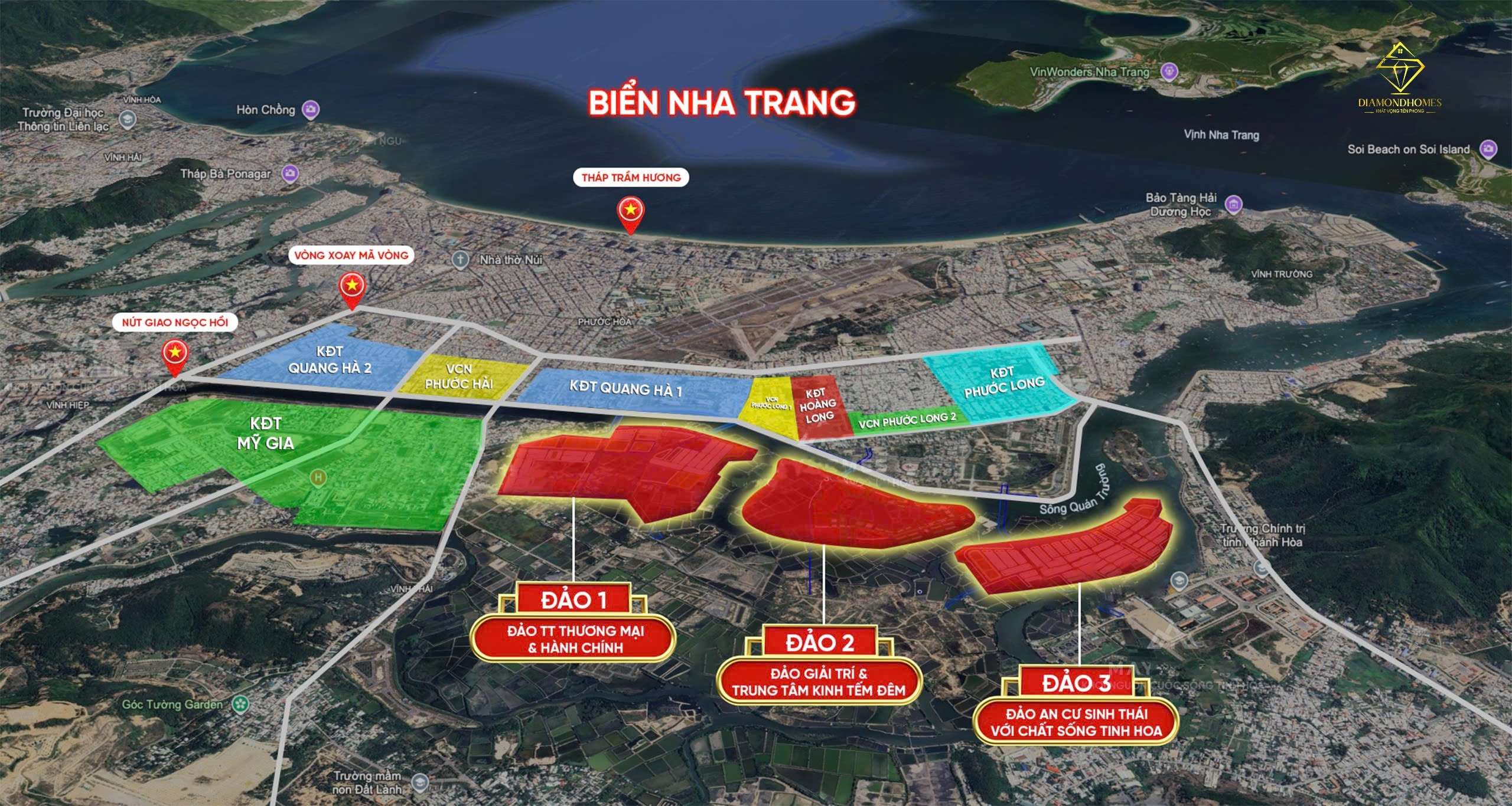 Vị trí này vừa nằm gần trung tâm Nha Trang hiện hữu, vừa có quỹ đất lớn, giúp phát triển đồng bộ một khu đô thị có tính liên kết vùng mạnh mẽ, đáp ứng đồng thời nhu cầu an cư, nghỉ dưỡng và khai thác kinh doanh dịch vụ
