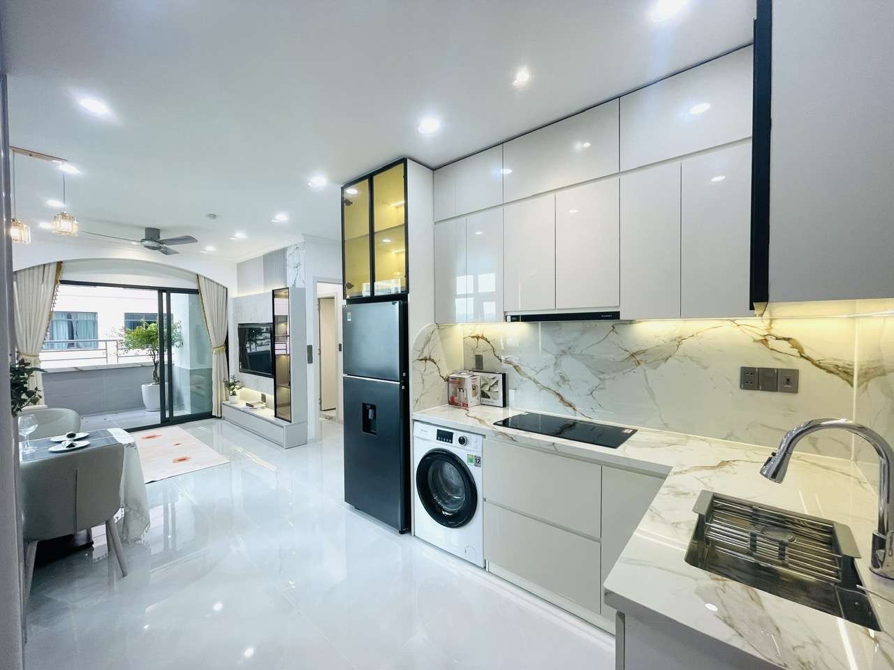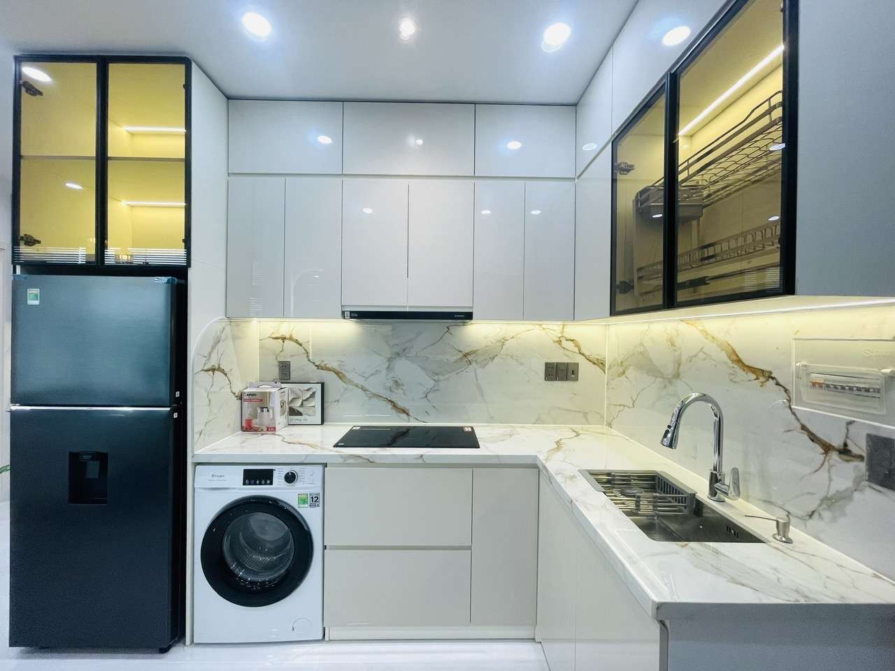 - Nhà bếp: Trang bị tủ bếp hiện đại, bếp từ, máy hút mùi – sẵn sàng cho mọi nhu cầu nấu nướng.