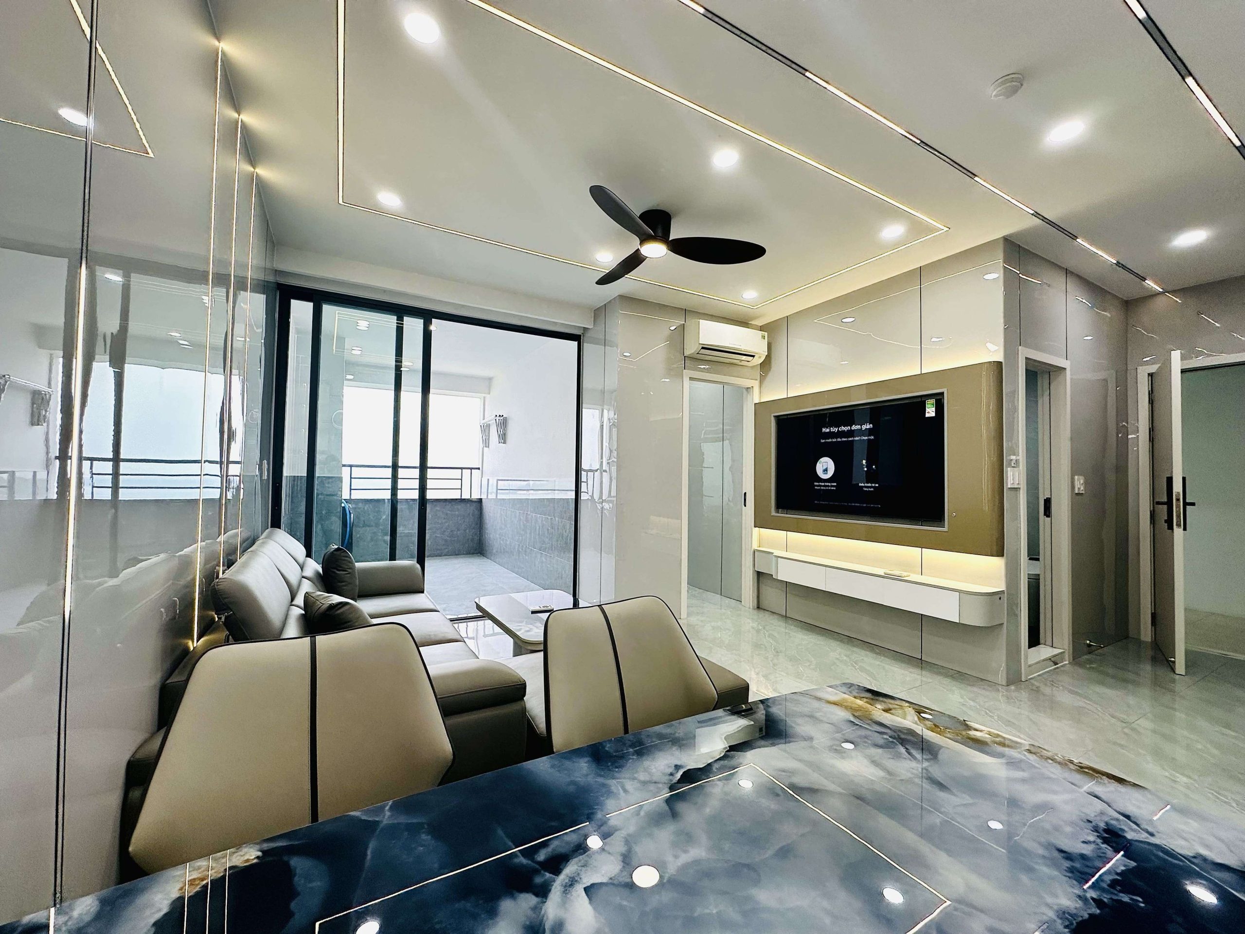 - Phòng khách: Sang trọng với sofa mới, bàn trà tinh tế, tivi,..