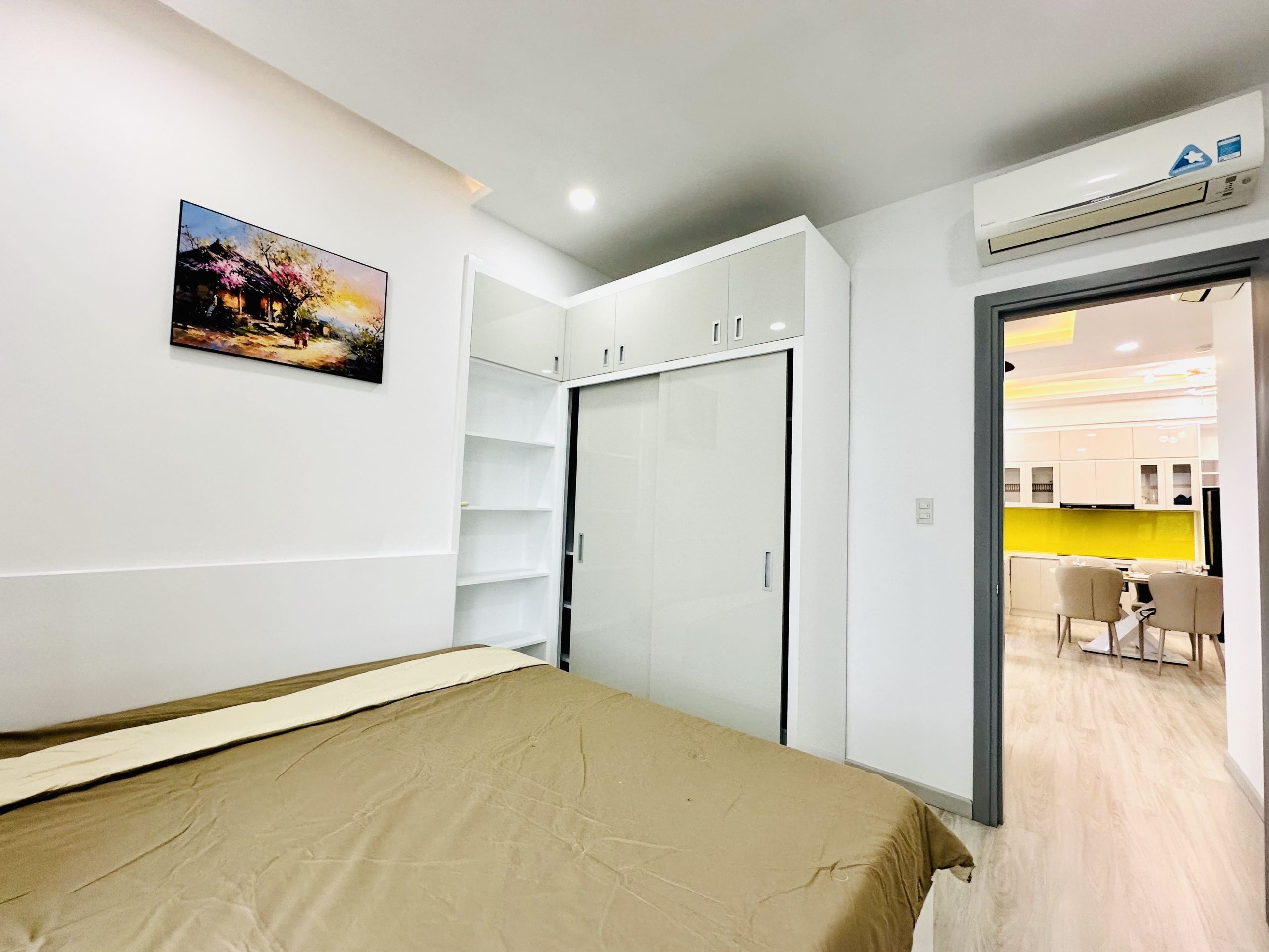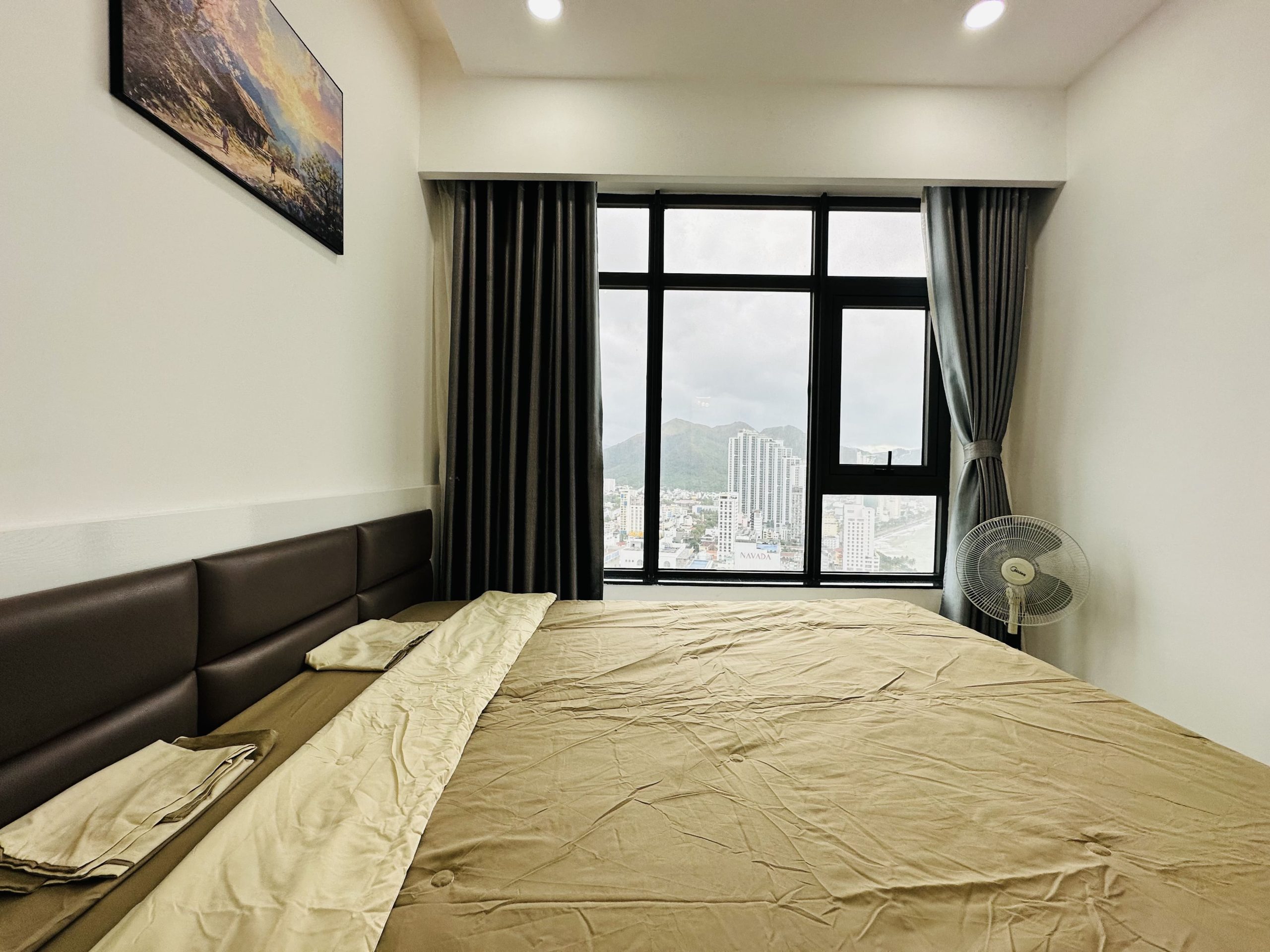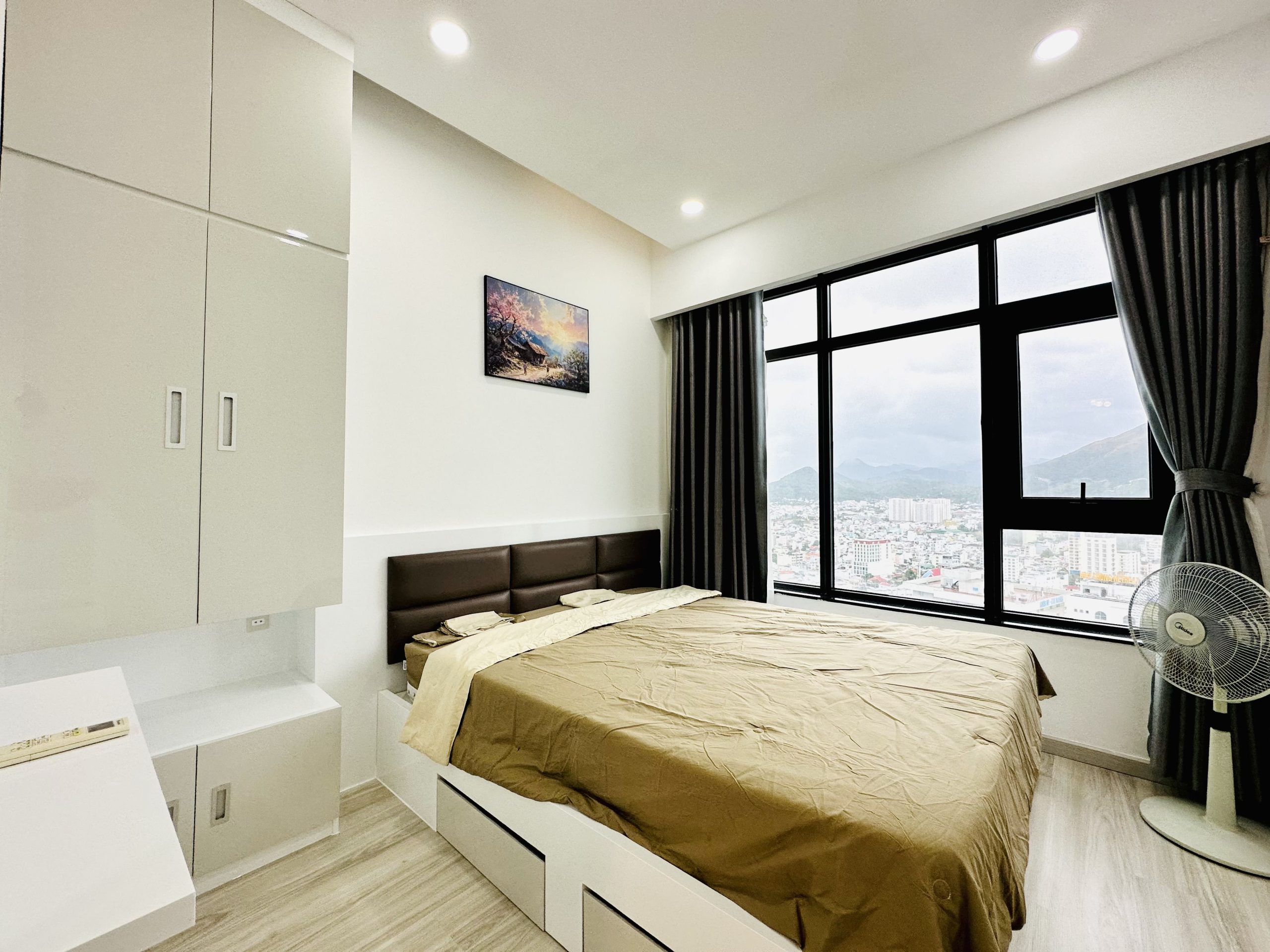 - Phòng ngủ: 2 phòng ngủ rộng rãi với giường king-size, tủ quần áo, và tivi